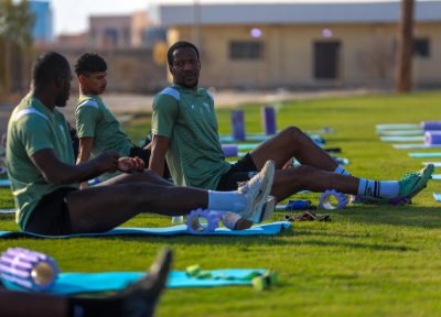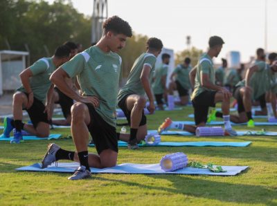 وبعد نهاية التدريبات خضع اللاعبين لجلسات استشفاء في حمام الثلج لتخفيف الإرهاق .