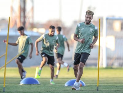 وبدأت التدريبات بتمارين الإحماء واللياقة بعد ذلك طبق اللاعبين عدد من الجمل الفنية للجوانب الدفاعية والهجومية ،  كما خضع حراس المرمى لتدريبات خاصة مع مدرب الحراس .